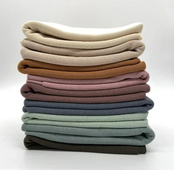 ۴. پارچههای بافتنی و کشباف (ژرسه و ریب): پارچههای بافتنی به دلیل خاصیت کشسانی طبیعی برای لباسهای روزمره بسیار محبوب هستند.