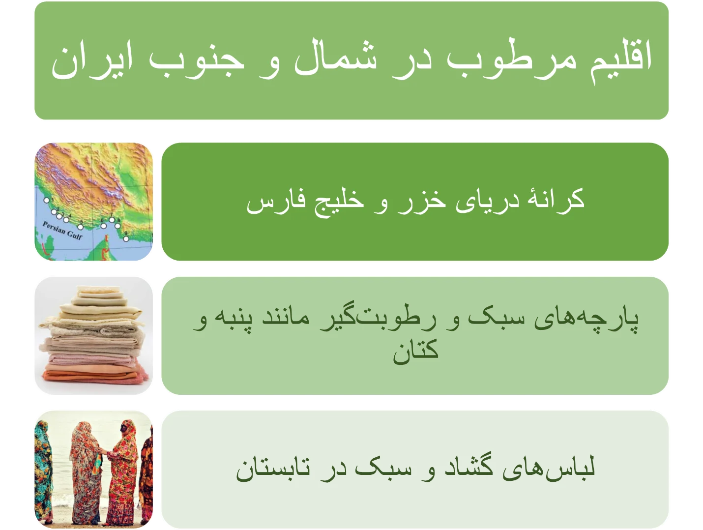 2. اقلیم و لباس در مناطق مختلف ایران