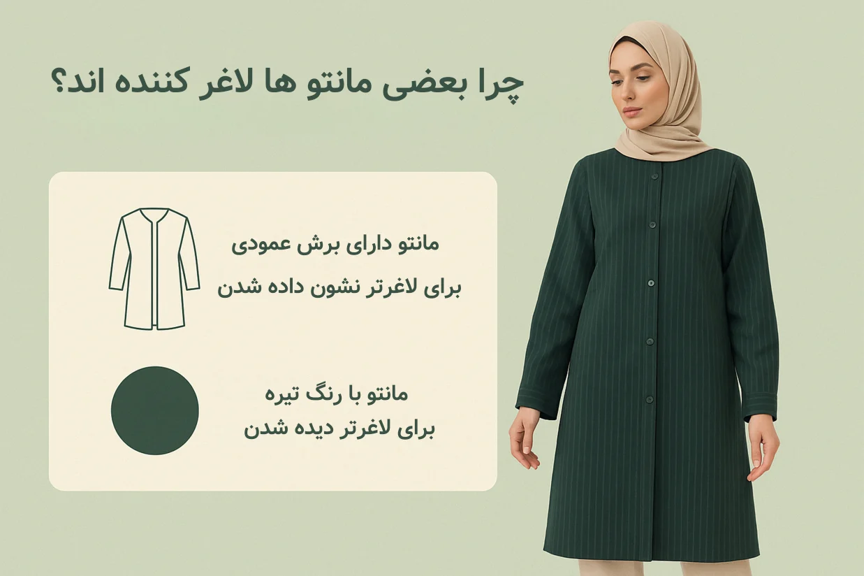 5 مدل مانتو لاغرکننده که تو رو تا دو سایز باریکتر نشون میده! (راز خوشاستایل دیده شدن)