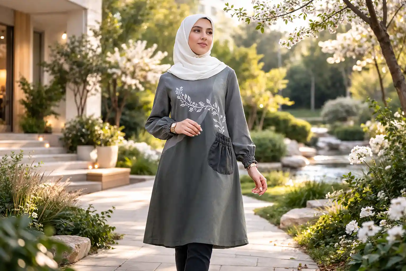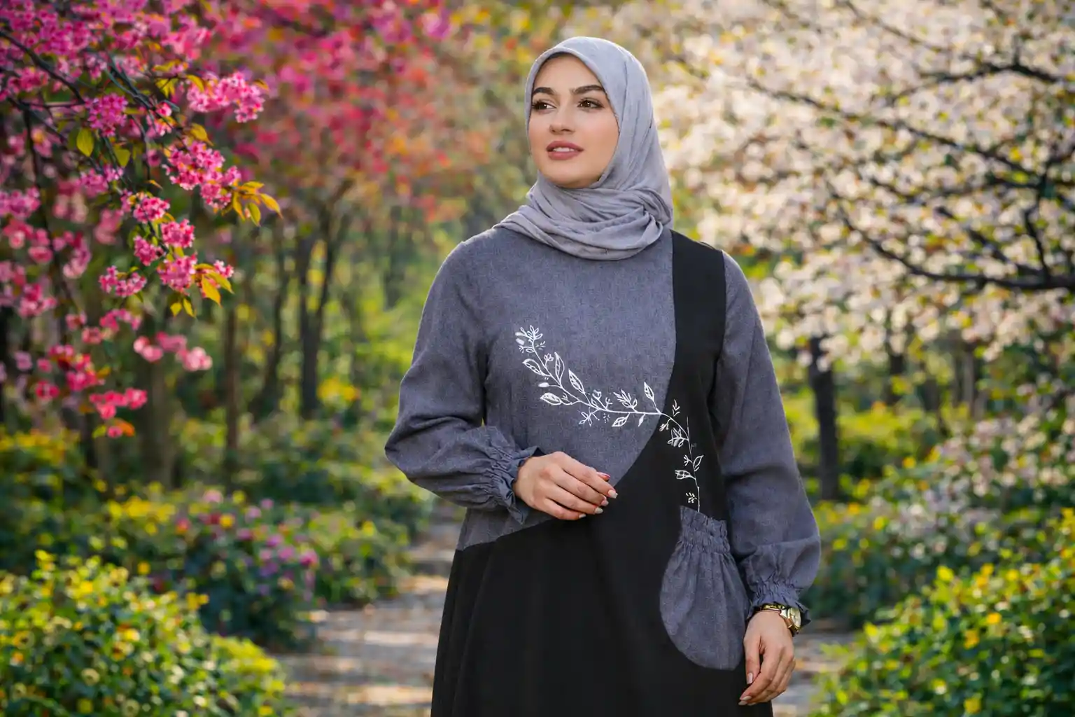 جیب کاربردی با جزئیات گلدوزیشده: حس استقلال و امنیت را القا میکند؛ گلی که از جیب بیرون آمده، استعارهای از رشد و زندگی در دل کاربردیترین جزئیات است.